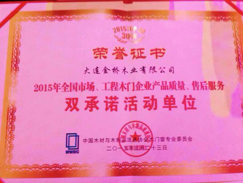大連金橋木業(yè)有限公司(品橋木門(mén)),榮獲中國(guó)木材與流通協(xié)會(huì)木門(mén)企業(yè)產(chǎn)品質(zhì)量、售后服務(wù)雙承諾全國(guó)30強(qiáng)企業(yè),新聞發(fā)布會(huì)在廣州舉行。