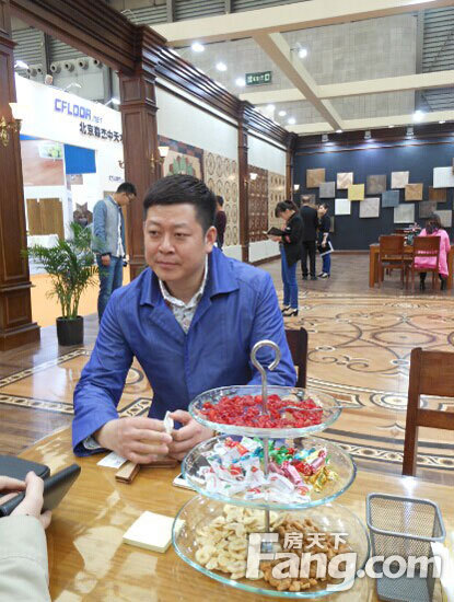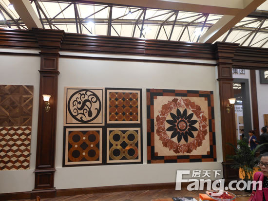 【韓雨】:卓爾有約本次參展的亮點(diǎn)是帶來(lái)了大拼花地板(36平一副),這種產(chǎn)品的銷售主要針對(duì)高端的會(huì)所、別墅、酒店大堂、以及會(huì)所、浴室等拼花系列,我們主要靠企業(yè)專家團(tuán)隊(duì)研發(fā),參考?xì)W洲、亞洲最新流行元素,運(yùn)用不同的顏色,采用不同的油漆的做法,不同的圖案的組合;與我們類似產(chǎn)品的企業(yè)不多,去歐洲觀展,回來(lái)學(xué)習(xí)在其基礎(chǔ)上學(xué)習(xí)。歐洲帶動(dòng)美國(guó)、美國(guó)帶動(dòng)亞洲,現(xiàn)在基本很快又些變化。