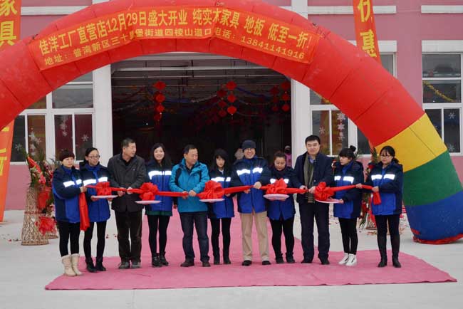 2015年12月29日上午九點(diǎn),大連市首家木制品工廠直營(yíng)賣(mài)場(chǎng)——“佳洋實(shí)木家具、地板工廠店”在禮炮聲中正式營(yíng)業(yè),大連市木業(yè)協(xié)會(huì)會(huì)長(zhǎng)徐輝、秘書(shū)長(zhǎng)田洪飛等領(lǐng)導(dǎo)到會(huì)祝賀并剪彩。