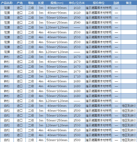 然相當(dāng)看好。目前廣東市場(chǎng)北美花旗松長(zhǎng)2—4m、A級(jí)加工統(tǒng)材報(bào)價(jià)1340元/立方米;南方松2—4m、A級(jí)加工統(tǒng)材報(bào)價(jià)1360元/立方米。