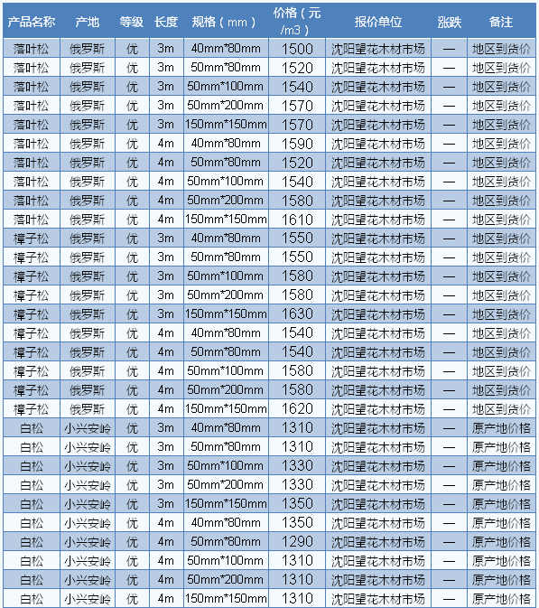 木材市場(chǎng)聯(lián)盟新動(dòng)態(tài):近期,東北鋸材市場(chǎng)冷清不堪,行情弱勢(shì)整理。據(jù)商家反映,下游市場(chǎng)需求一片慘淡,大多數(shù)商家的庫(kù)存遲遲難以有效消耗,即使是降價(jià)出貨,尋貨問(wèn)價(jià)者依然寥寥無(wú)幾。在眾多東北材品種當(dāng)中,松木類材種走勢(shì)相對(duì)較好,特別是用于基礎(chǔ)建筑方面的材料,市場(chǎng)依然能維持一定的出貨量。不過(guò)有商家反映,東北松木材種使用比較 集中的地區(qū)主要在北方地區(qū),如華北、東北、西北等地區(qū),而華南地區(qū)的需求量則相對(duì)較少,原因主要是華南地區(qū)距離較為遙遠(yuǎn),運(yùn)輸成本過(guò)大,導(dǎo)致東北松木缺乏 性價(jià)比。目前山東德州落葉松規(guī)格4m×6cm×12cm報(bào)價(jià)1700元/立方米。